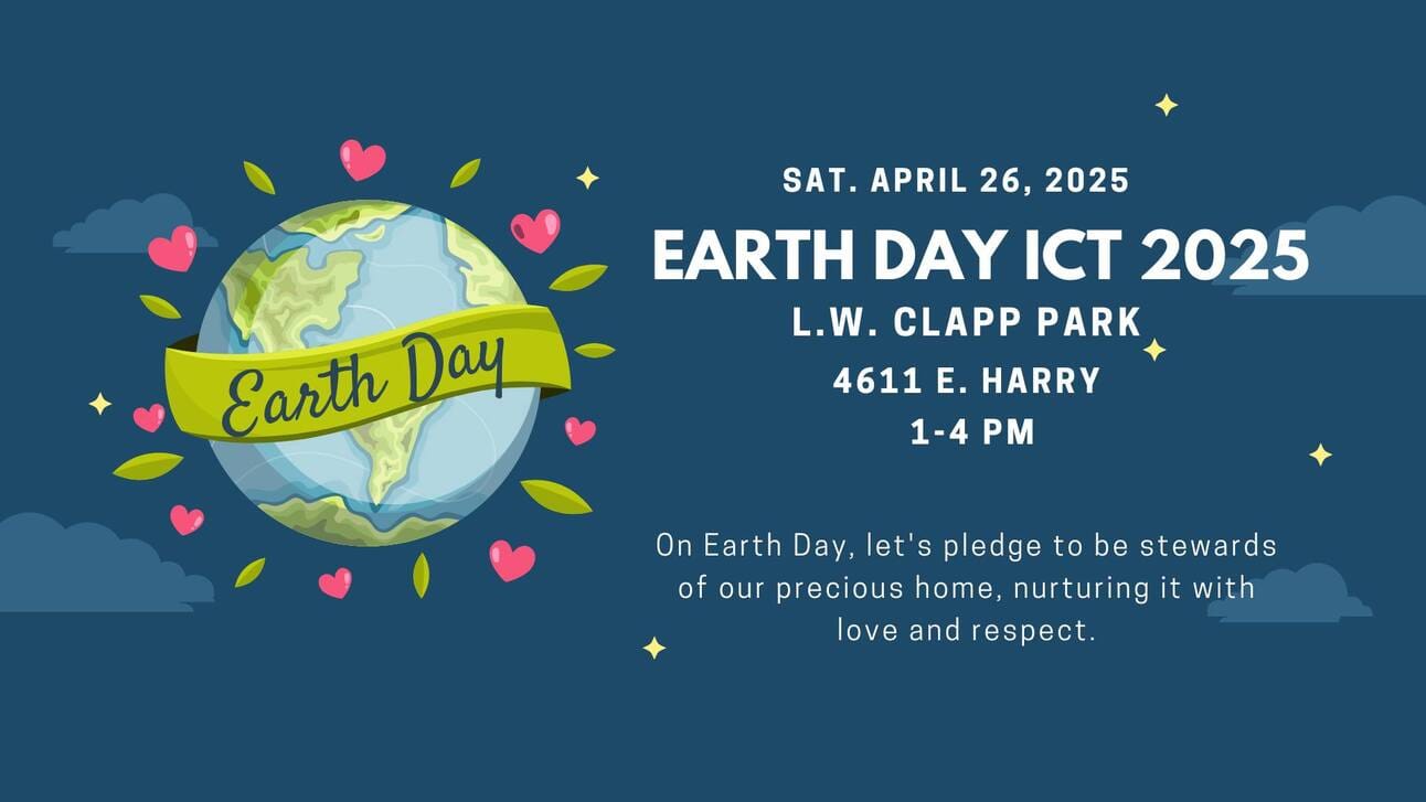 Here is your reminder to come to 🌍 Earth Day ICT 2025, Saturday, April 26 | 1–4 PM | LW Clapp Park | 4611 E Harry St, Wichita, KS 🌿.